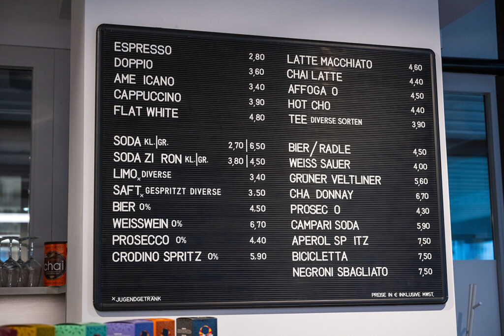 Am Nachmittag und Abend wird es bei uns genussvoll entspannt: Freu dich auf ein kühles Birra Moretti, einen klassischen Campari-Drink oder österreichischen Qualitätswein von unserem Winzer Bruno Kirschbaum. Alles auch ohne Alkohol möglich 😊